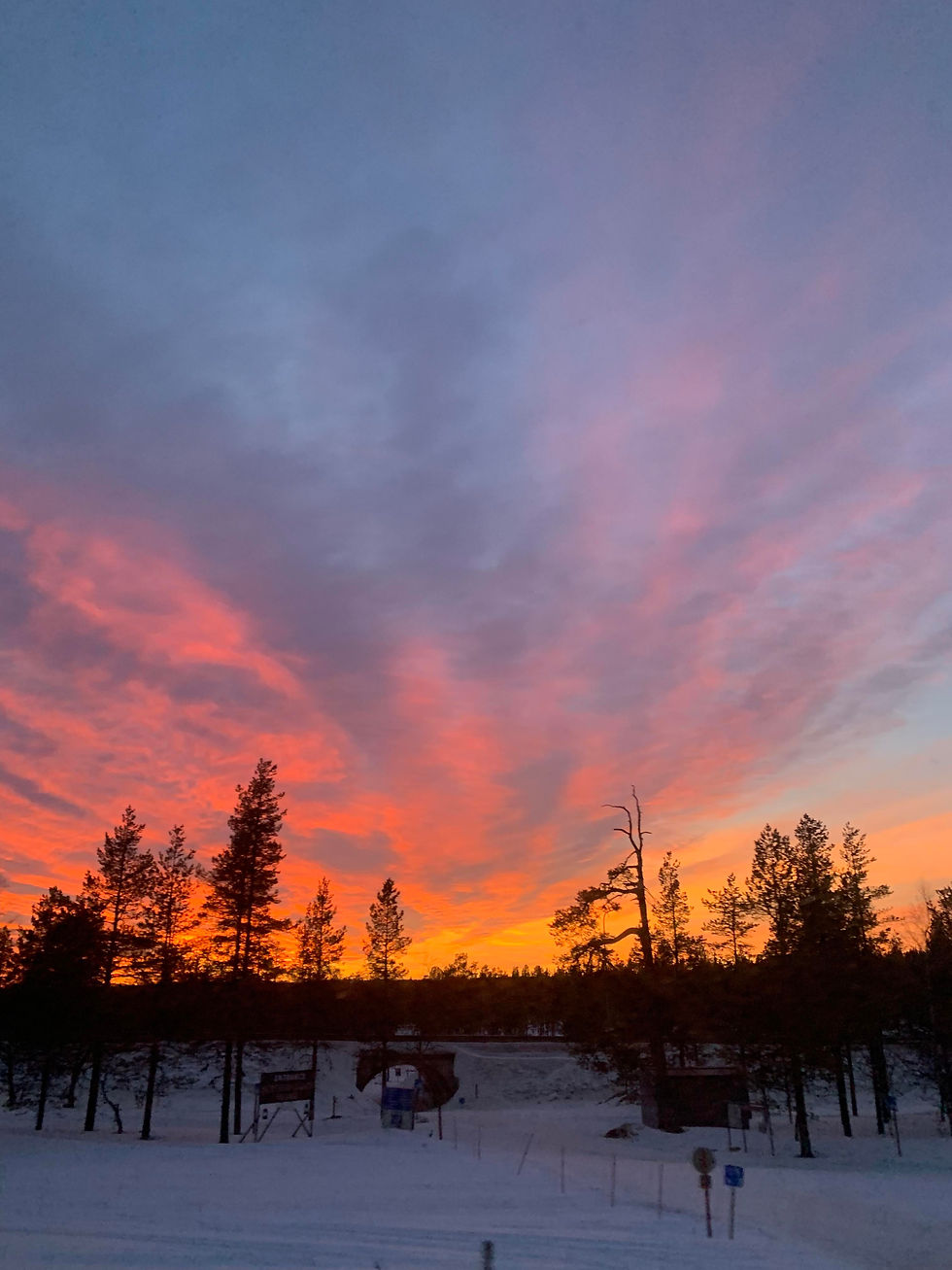 After these two visits, we only had a few hours of bus to finally arrive on the site where we will stay. It is thus around 8 pm that we arrived at Saariselkä. We could enjoy the sunset with a sublime landscape. We were very relieved to finally arrive and to finally be able to sleep in real beds. The week could begin.
